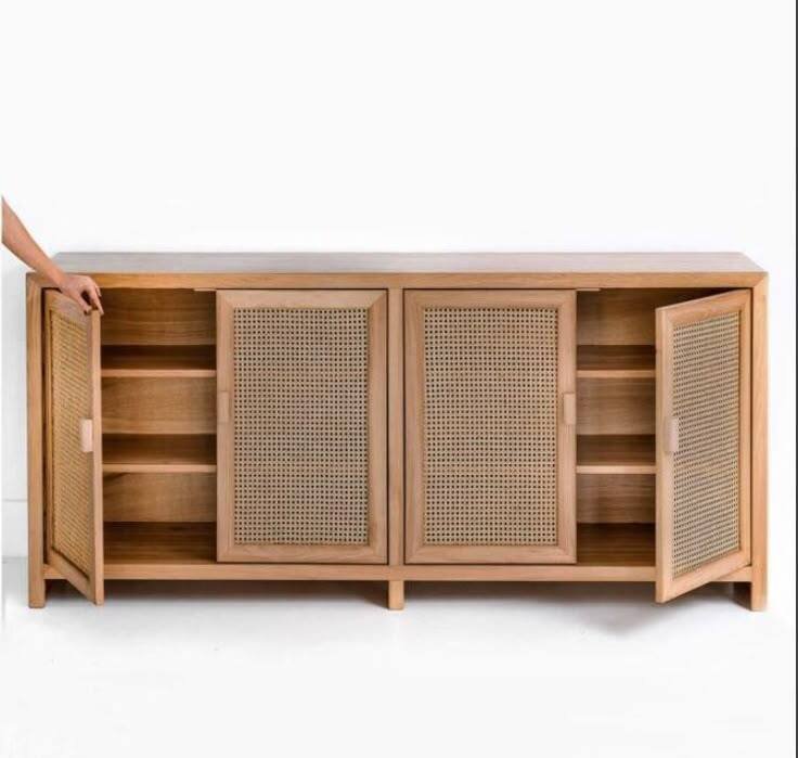 Functional, Stylish, and Eco-Friendly Storage: Creating an Inviting Home Environment with a Teak and Rattan Cabinet.