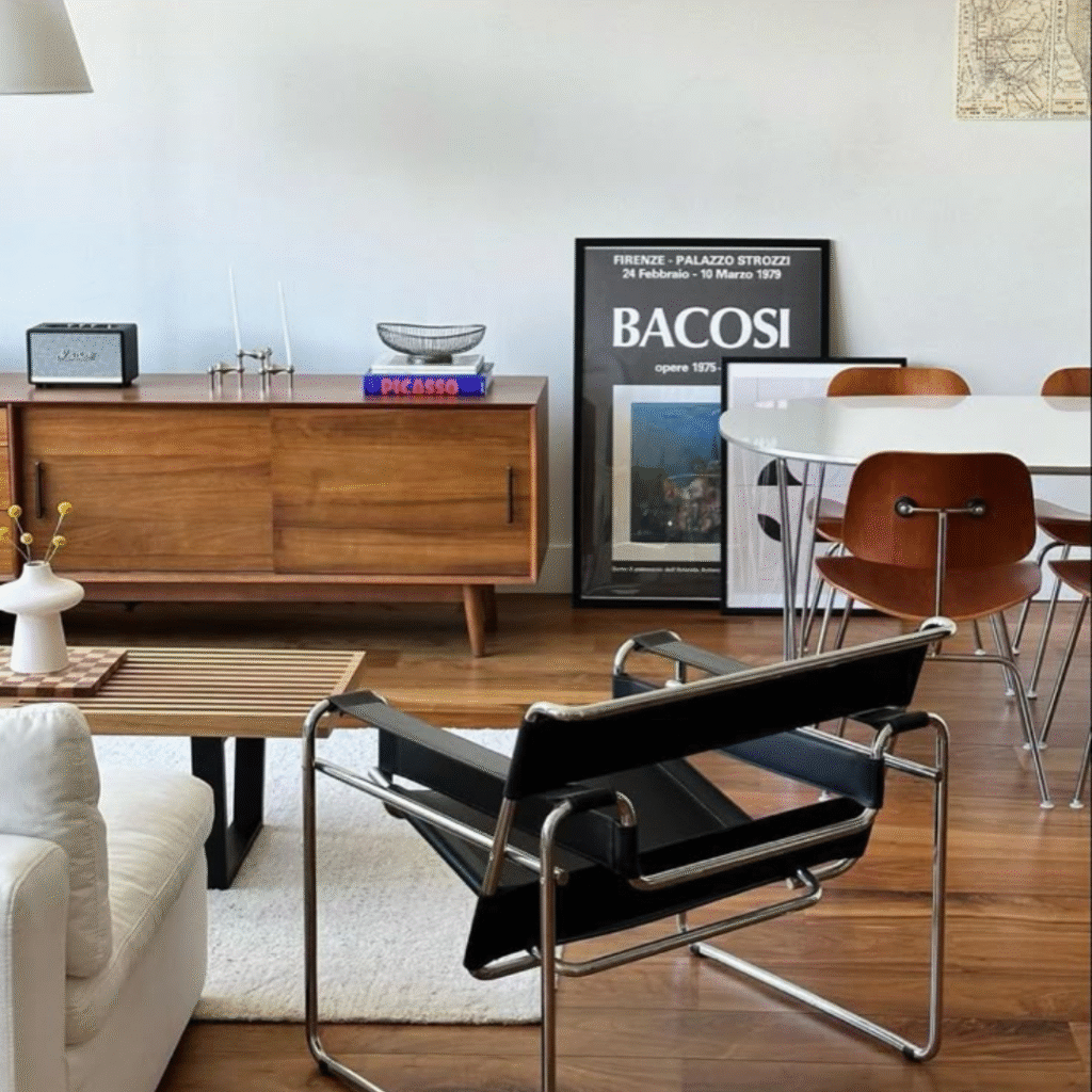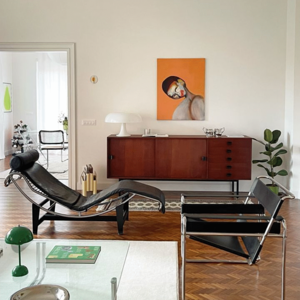 During the golden age of mid-century design, every detail mattered. The combination of stainless steel and genuine leather embodies that balance between strength and comfort. The stainless frame delivers clean lines and lasting durability, while the leather upholstery offers warmth and tactile luxury. Together, they create a harmonious composition that enhances any modern interior without losing the charm of its vintage inspiration.